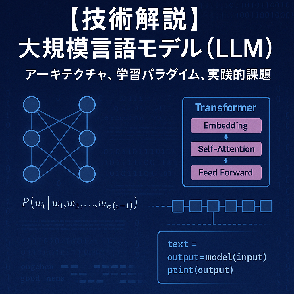 大規模言語モデル(LLM)は、単なる「賢いチャットボット」ではありません。その背後には、自然言語を確率的なシーケンスとして捉え、膨大なパラメータ空間の中で言語の構造を再現する、洗練された技術体系が存在します。