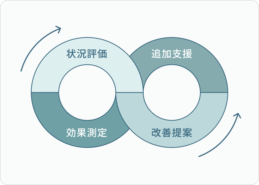 私たちは、現場での定着・活用状況を丁寧に見極めながら、改善提案や追加支援を継続的に行います。
