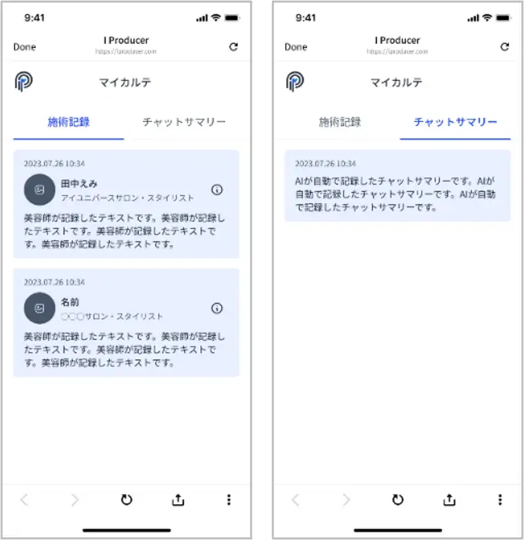 「i Producer」は会話のサマリ機能を搭載しており、長い会話や重要なポイントを自動的に要約し、美容師が顧客の要望を素早く把握しやすくします。これにより、時間を効率的に使用し、顧客にとって最も重要なサービスを提供できるようになります。